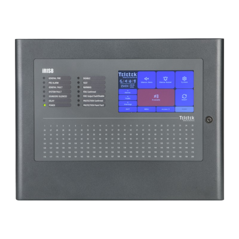 Centrala adresabila incendiu cu 1 bucla, extensibila la 4 bucle, sau la 8 bucle prin interfata IRIS8. Memorie 10000 evenimente, maxim 1000 de dispozitive pe o centrala, 500 de zone software (din care 200 sunt afisate cu LED); 1000 intrari/iesiri programabile, afisaj 7 inch color "touch screen"; port Ethernet si MODBUS, maxim 64 centrale si/sau repetoare in retea, procesor redundant, certificata EN54-2/4, CE, CPD, LPCB; sursa interna de 200 W, necesita un acumulator 12 V/18 Ah. Iesire de 1A pentru sirene conventionale. Carcasa metal. Permite conectarea unei surse suplimentare IRIS PS72 pentru extinderea autonomiei. Prin conectarea cu {IRIS8 Extensie bucle} se poate forma un sistem de detectie incendiu adresabil cu maxim 8 bucle.
